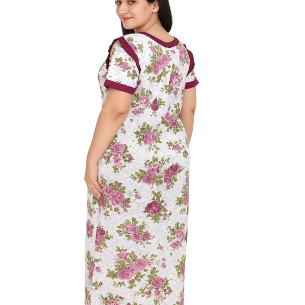 Women’s Floral Printed Satin Nighty/Maxi – Soft & Luxurious Sleepwear with Stylish Neck Design